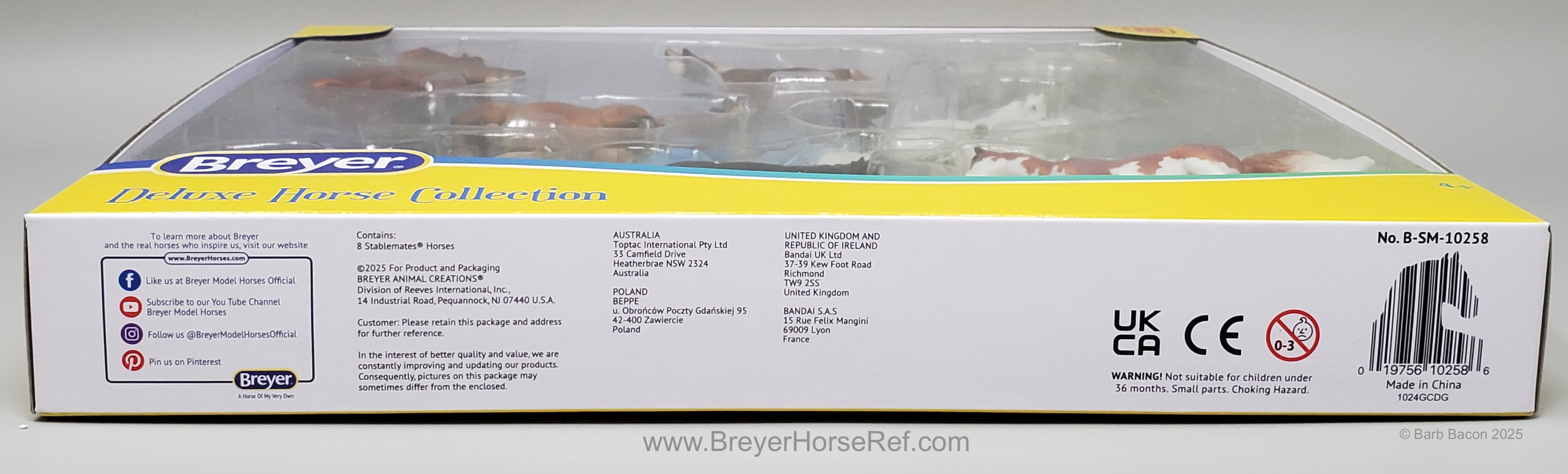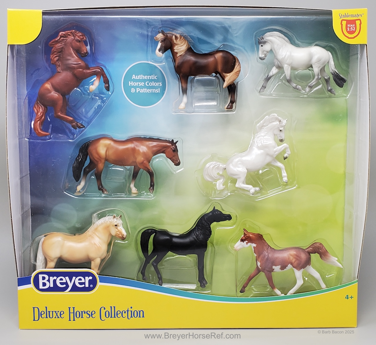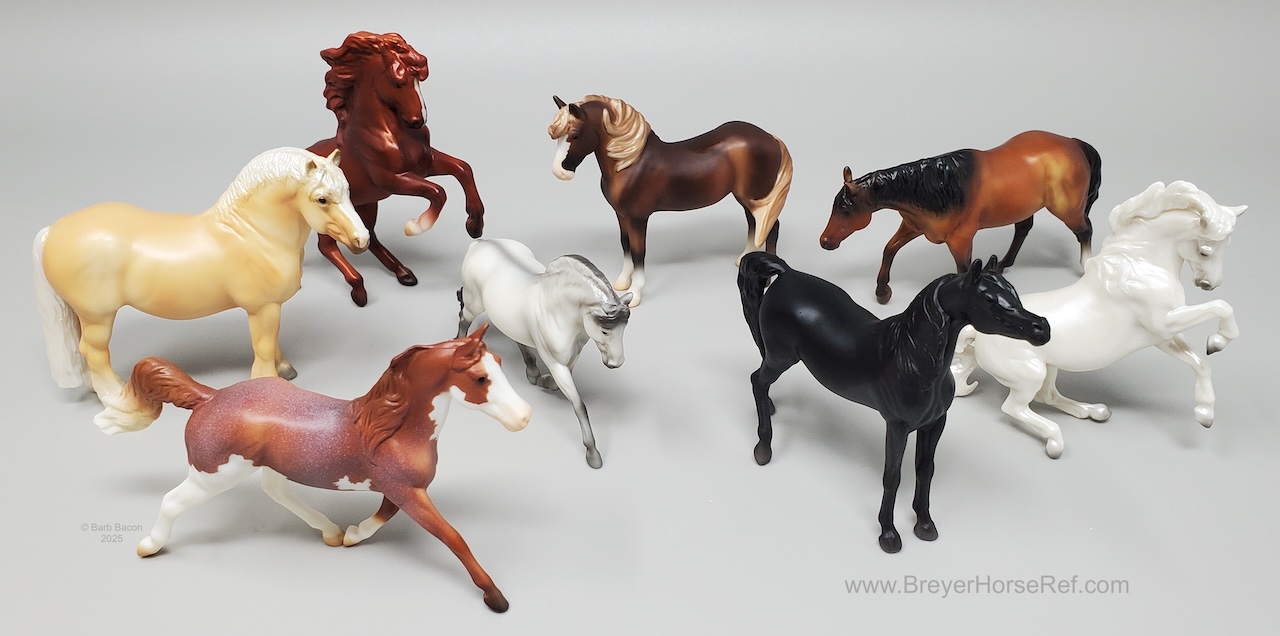 The Deluxe Horse Collection includes a Norwegian Fjord, Quarter Horse, Connemara Pony, Standardbred, American Cream Draft, Morgan, Mustang and an Arabian. "As the first horse breed developed in the United States, the Morgan horse has served in many important roles. Historically, Morgans have been farm horses, carriage horses, and even cavalry horses. Known for their sensible attitudes and animated gaits, Morgan horses remain popular mounts today." www.breyerhorses.com