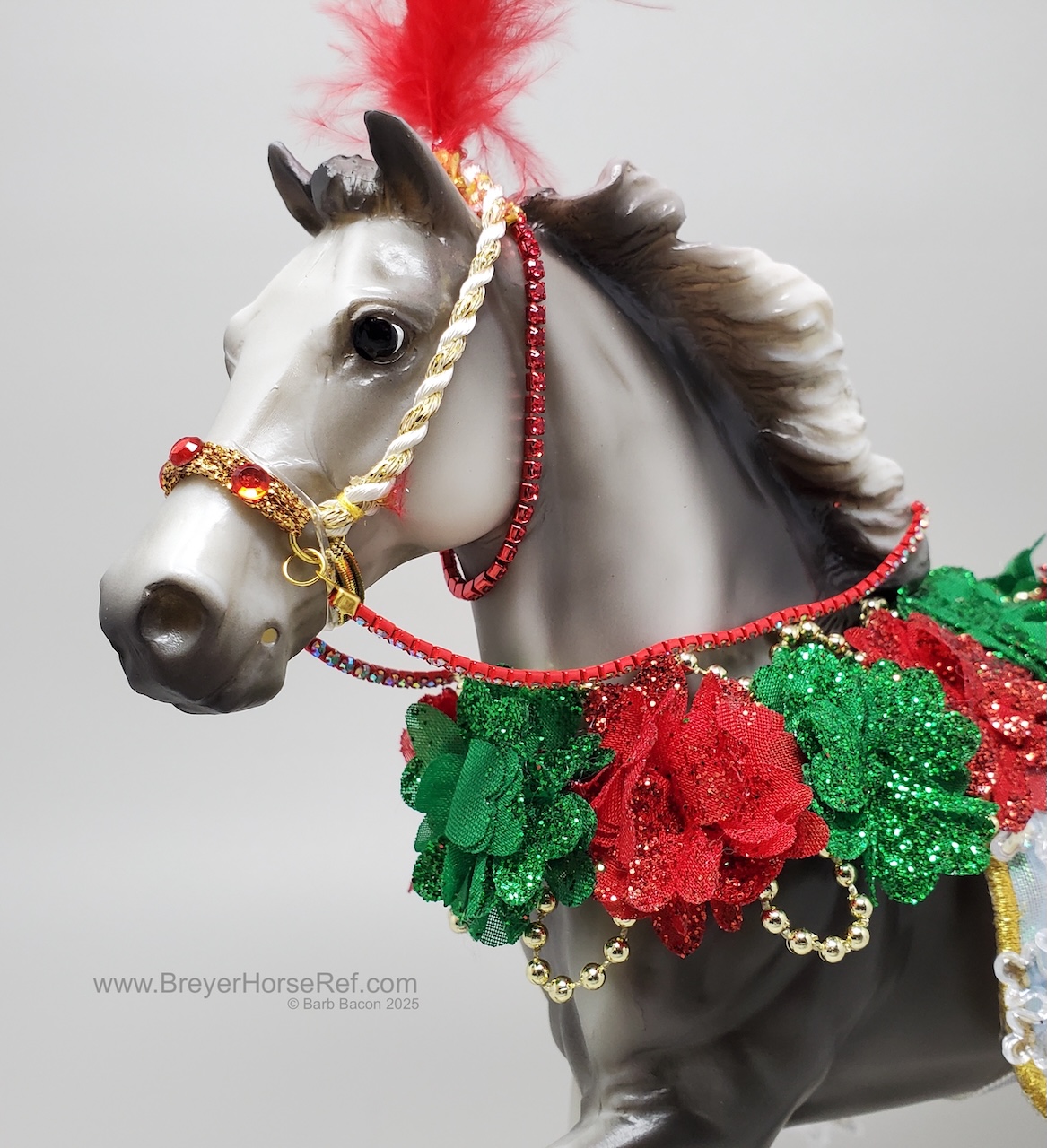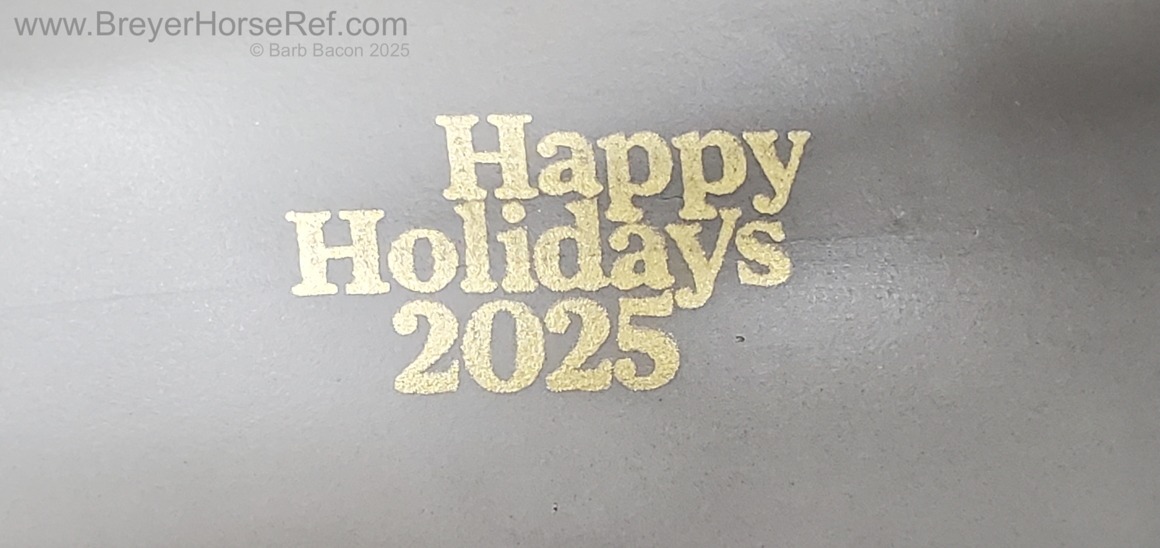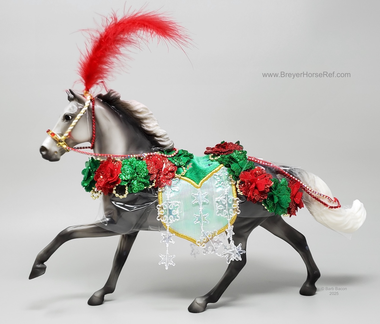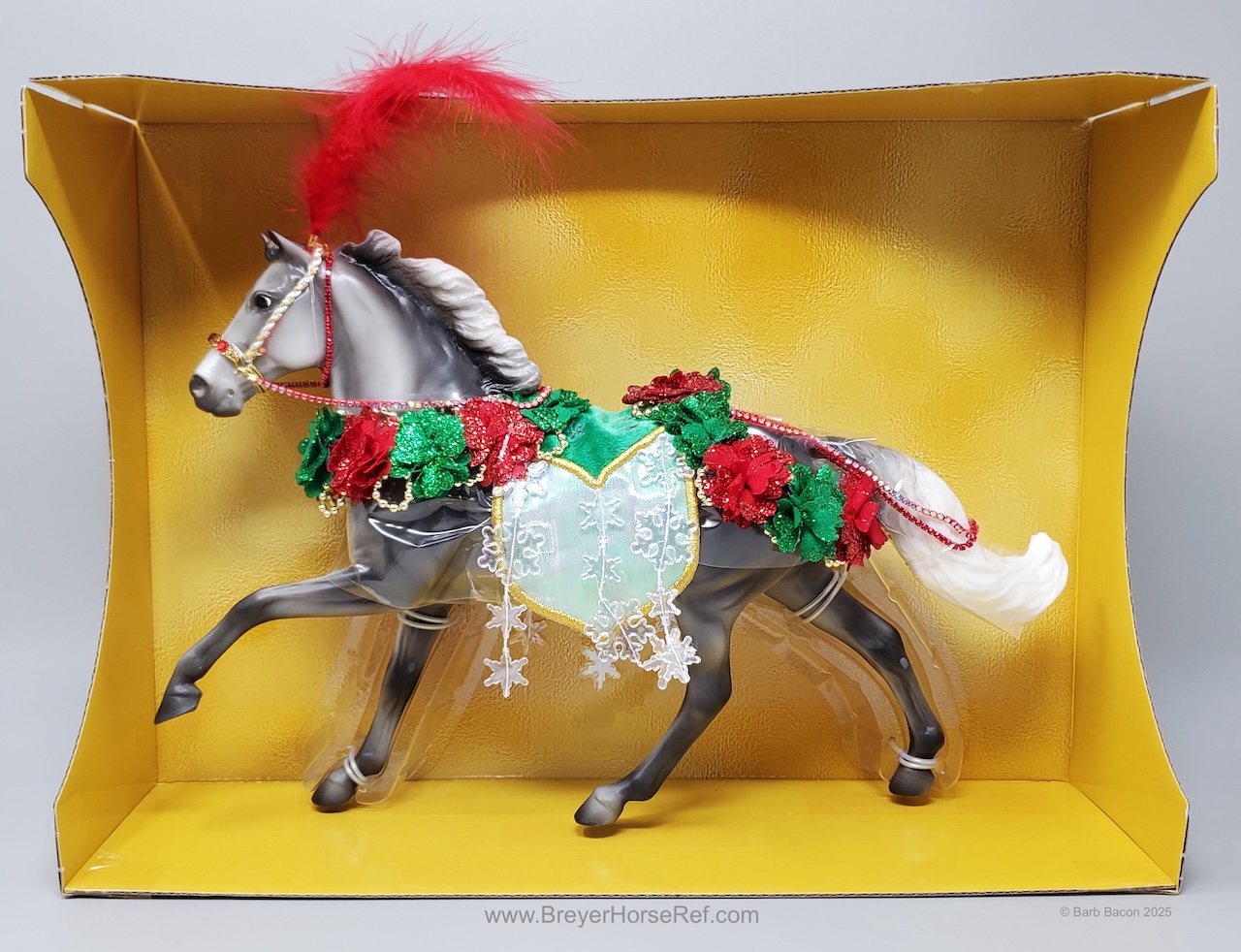 29th in the Holiday Horse series. Also in 2025, there was an enamel pin of this model as #B-GF-10511 and limited to 600 pieces. Both pin and model pictured in the 2025 Holiday Catalog.