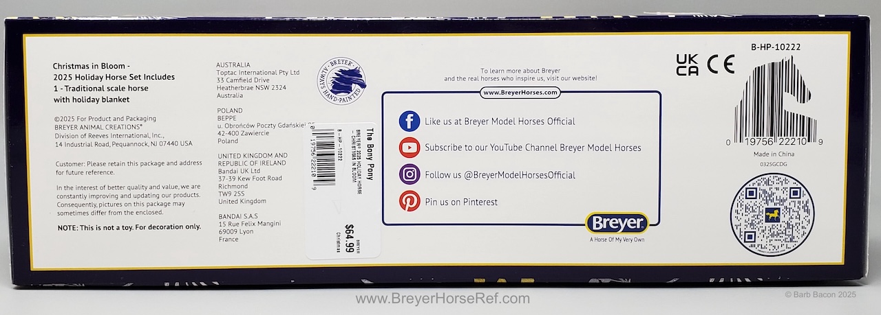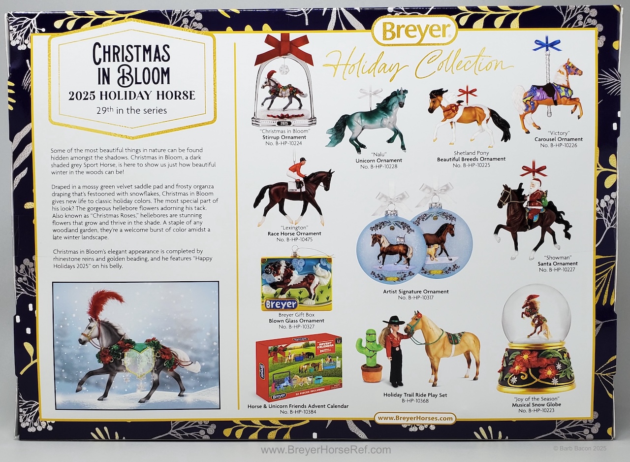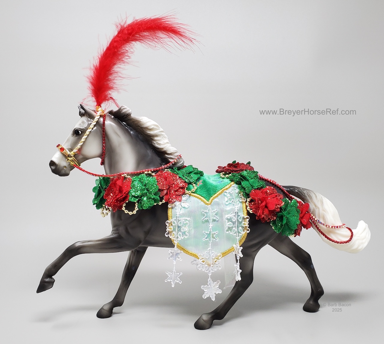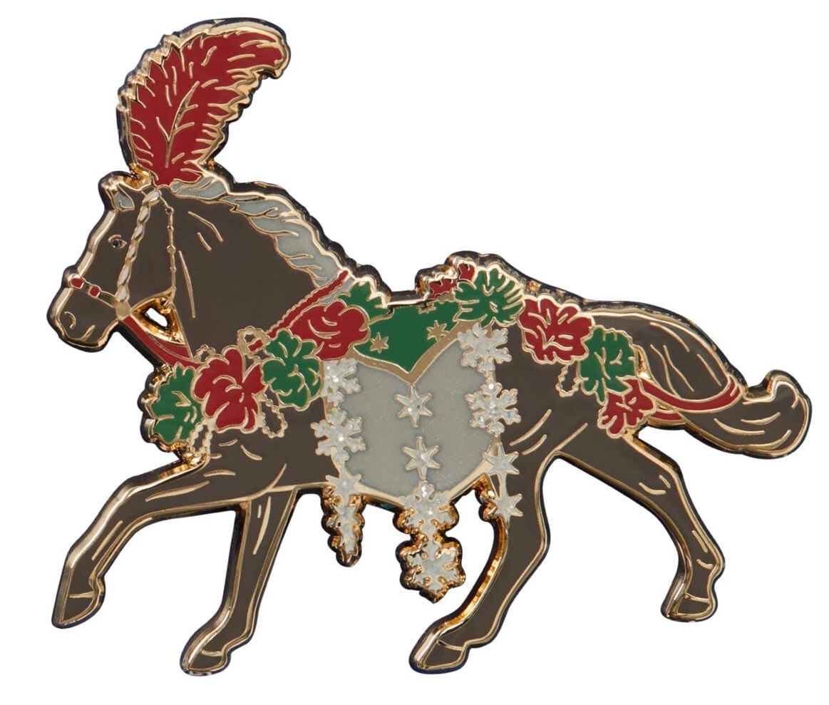 29th in the Holiday Horse series. Also in 2025, there was an enamel pin of this model as #B-GF-10511 and limited to 600 pieces. Both pin and model pictured in the 2025 Holiday Catalog.