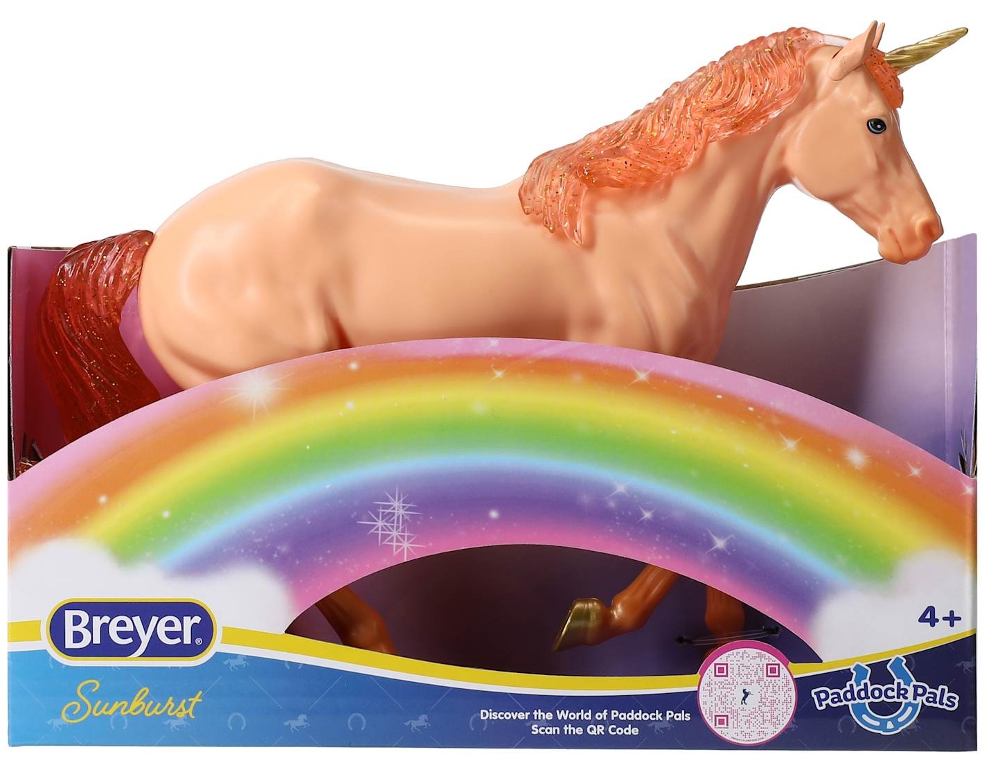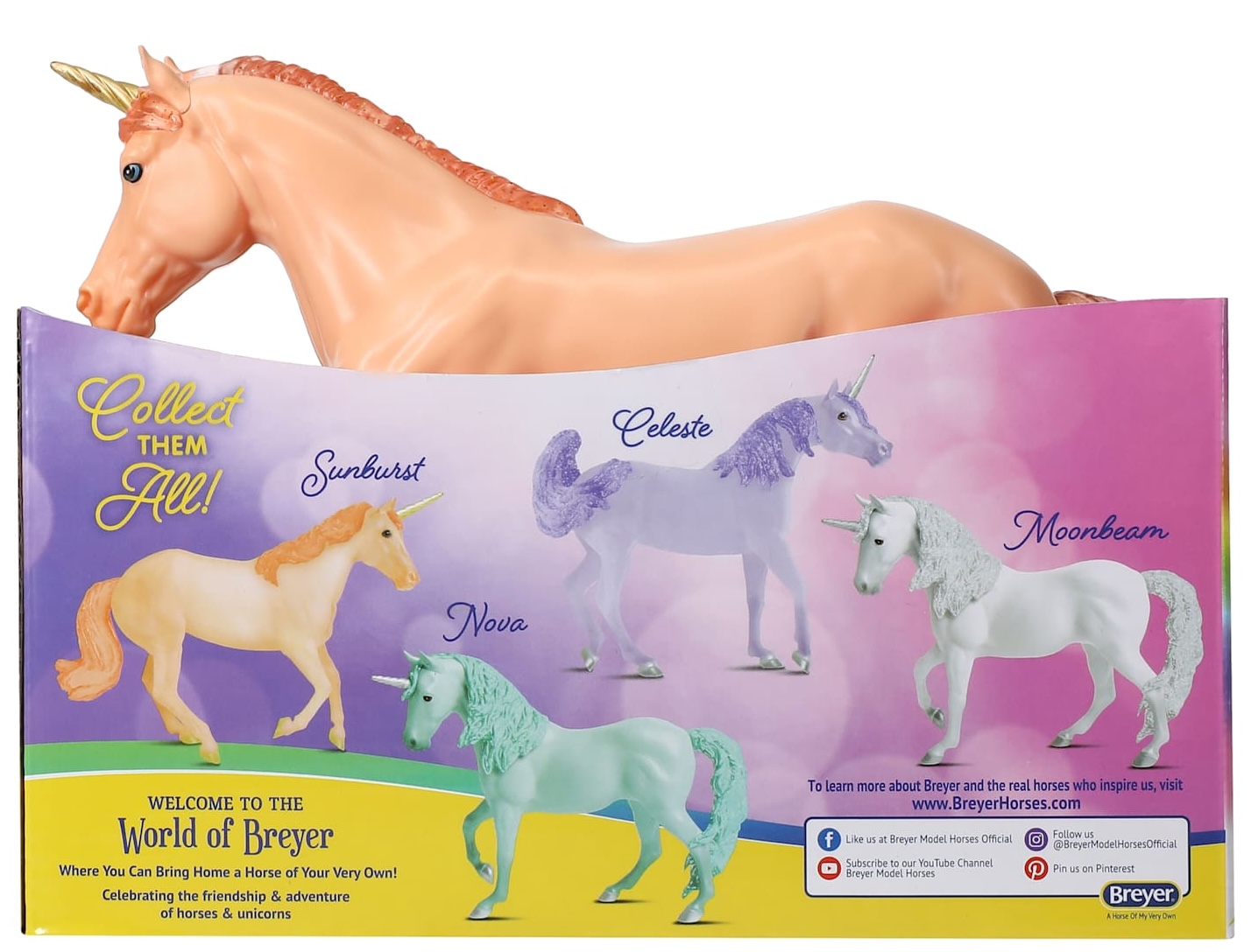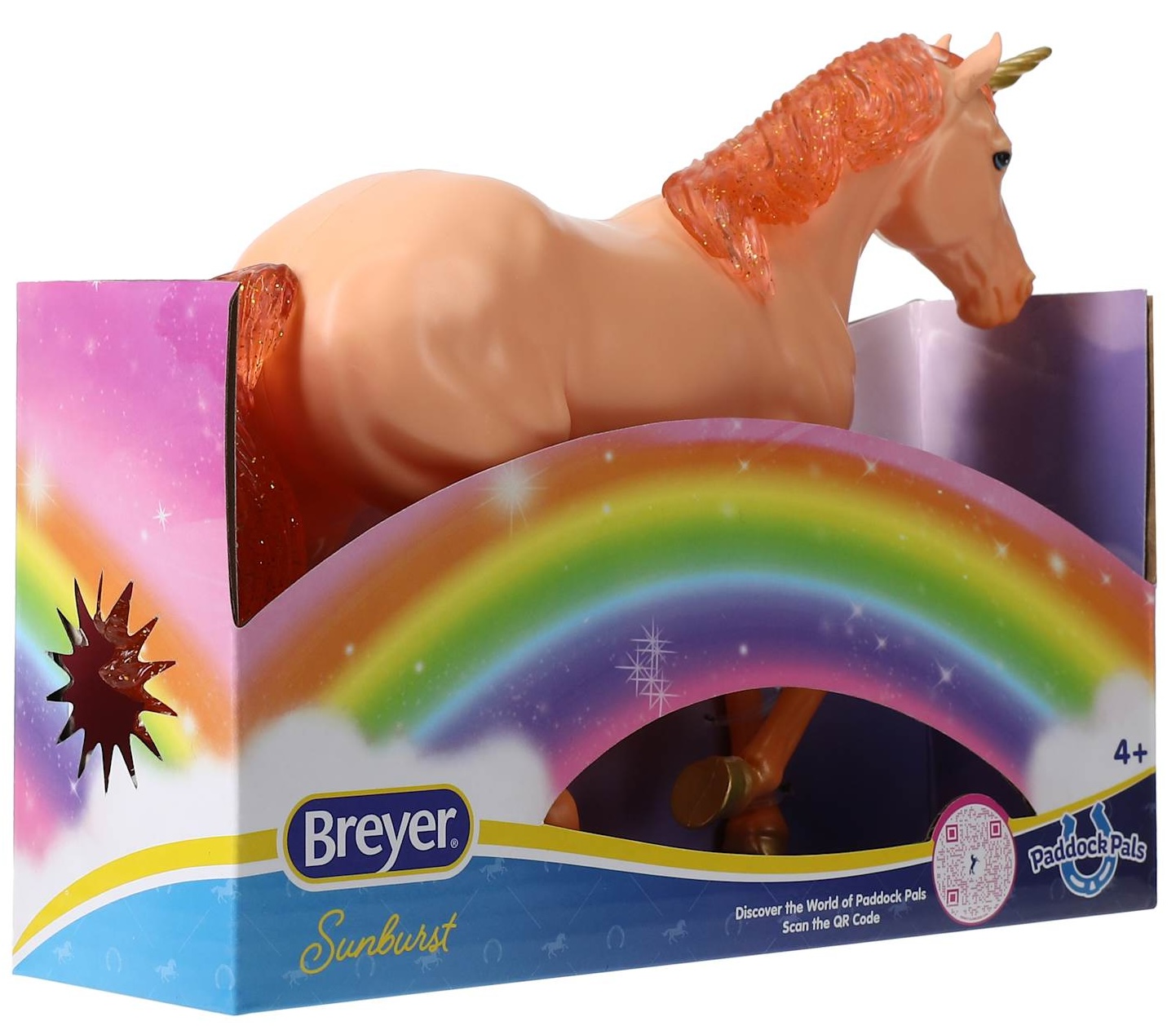 "Meet SUNBURST The Go-Solar Celestial Unicorn! When the rain stops, and the rainbows come out with the sun, you just might find Sunburst. He likes climbing up rainbows and sliding all the way down into the Paddock! Sunburst really gets a rise out of the peaceful Paddock Pals when he bursts right into the middle of the herd with a great big belly flop! Rain or shine, count on Sunburst’s sunny disposition! Look for him on every rainbow!" www.paddockpals.breyerkids.com