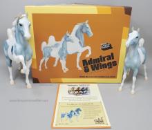 Admiral & Wings are wonderful homages to Breyer’s history. Combining the popular vintage Wedgewood decorator color with the pinto patterns of slightly more modern models, this pair perfectly evokes the timeless elegance of one of the most beautiful breeds: the American Saddlebred. This release comes with its unique vintage packaging and certificate of authenticity." www.breyerhorses.com