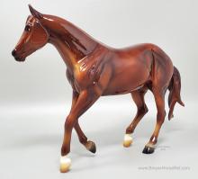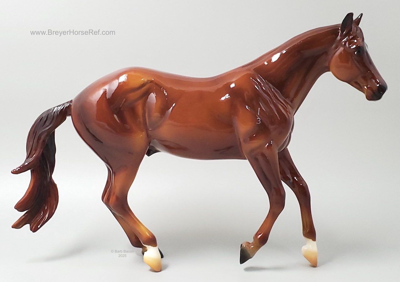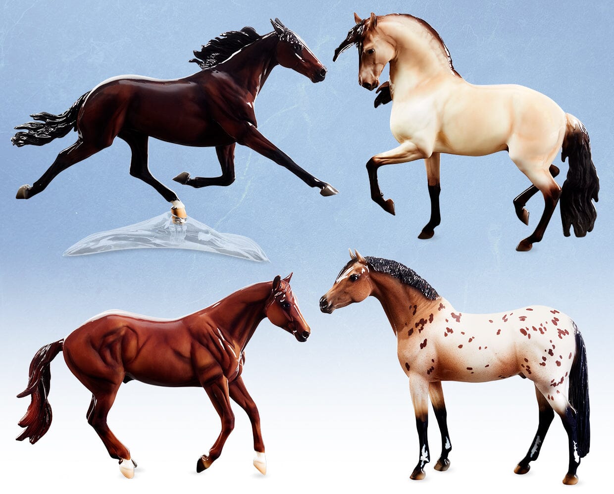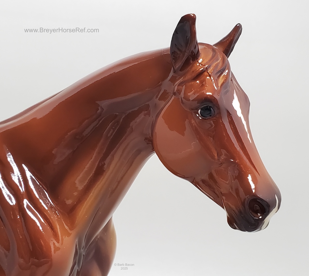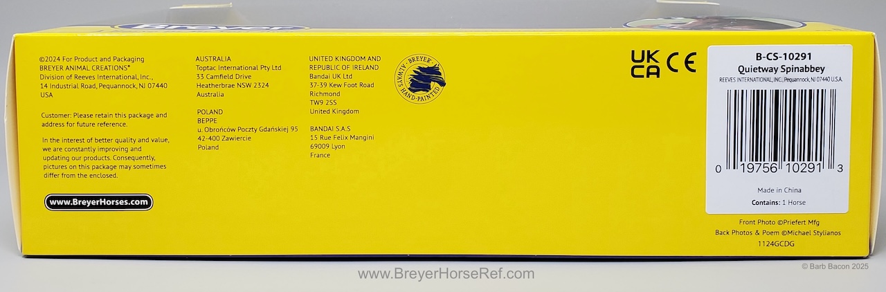 "If you’re a fan of famed Australian horseman Guy McLean, then the name Quietway Spinabbey (#B-TR-10121) may ring a bell. According to Guy, from his very first few days on earth, Spinabbey moved more like a gazelle than a foal – he spent more time with all four feet off the ground than he did with them on it! Now one of the lead horses in his live performances, Spinabbey can perform incredible maneuvers such as sideways gallops and backwards canters. His model has been produced with a custom roached mane – Spinabbey’s signature style – and includes a copy of Guy’s heartfelt keepsake poem entitled “My Mr. Incredible Quietway Spinabbey.” We're looking forward to welcoming Spinabbey to BreyerFest this year as part of Guy's team!" www.breyerhorses.com.