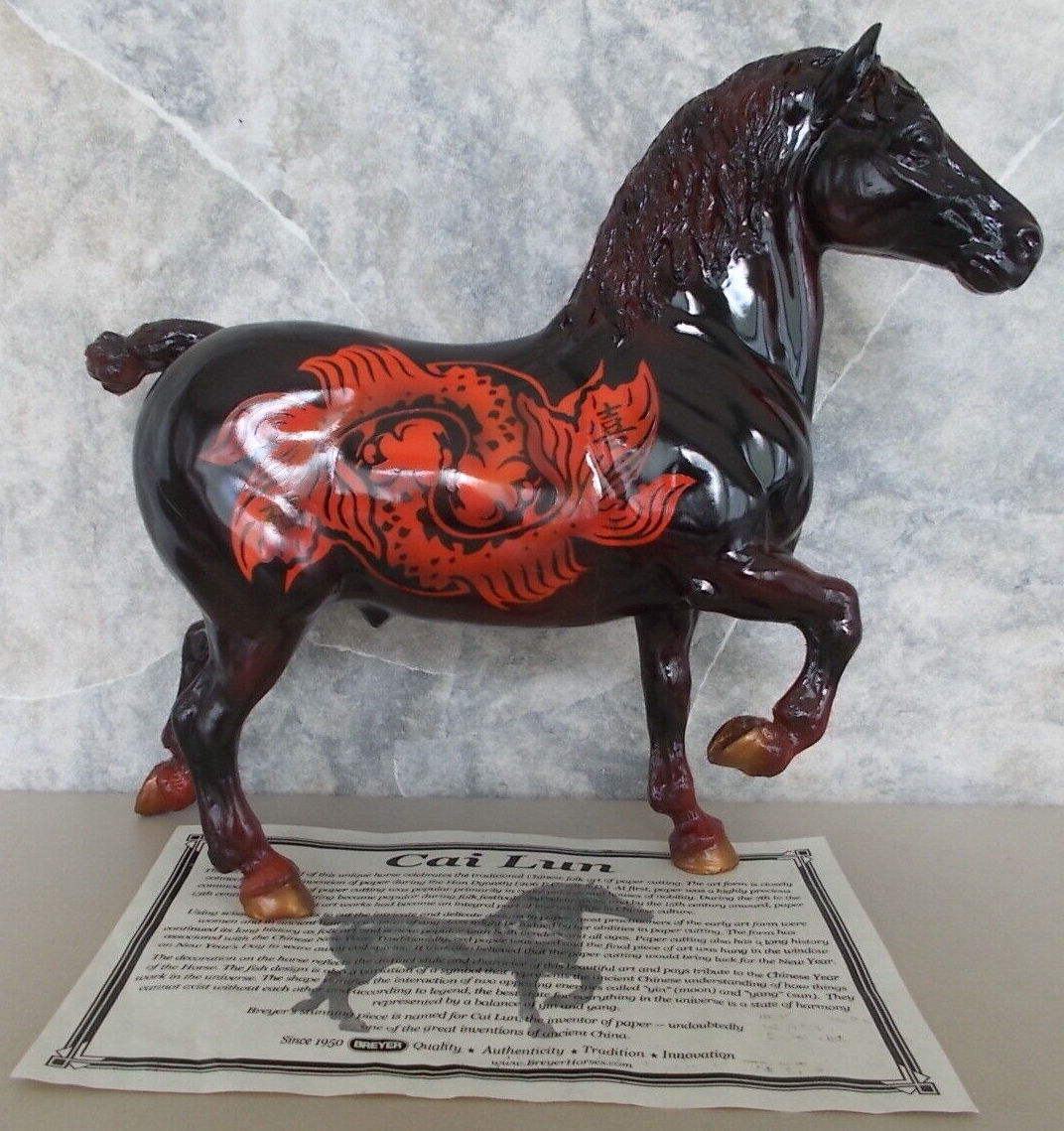 Cai Lun was done in 2001 on the Belgian mold for QVC to celebrate the Chinese Year of the Horse (2002). It featured a koi pattern designed by Kim Jipson.