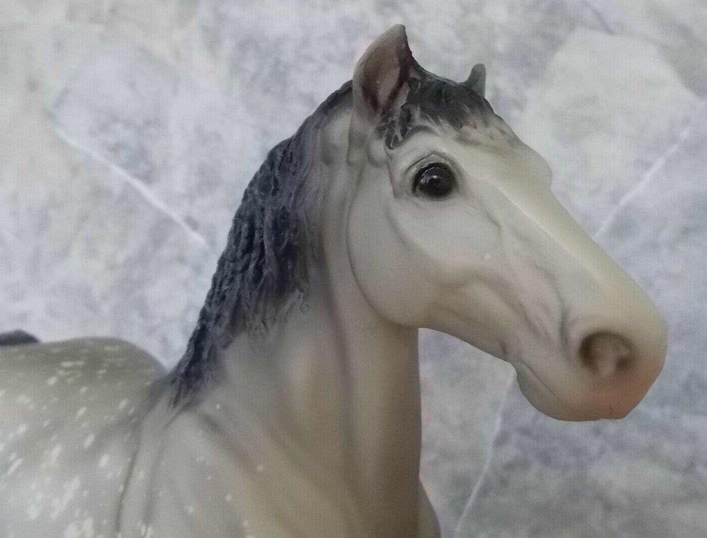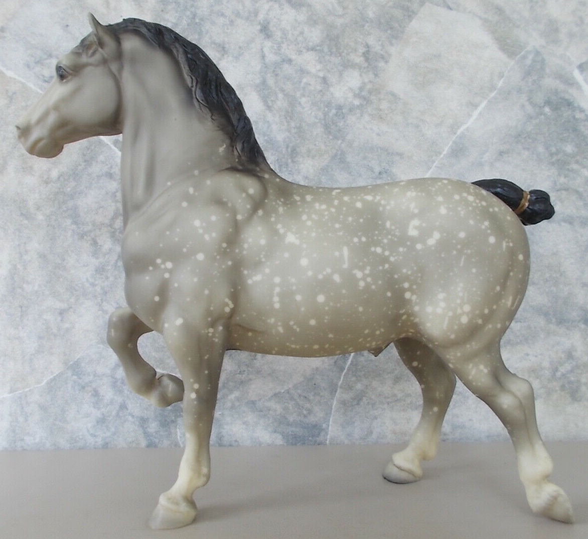 Gold Ribbons, Charcoal Mane and Tail. Model is very similar to the #94GR, with the main difference being the tail ribbon color, and the mane and tail may be darker on this run.