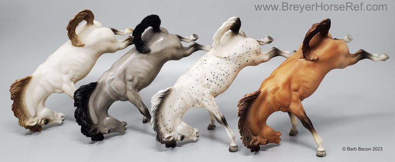 Special run #413190 released by Bentley Sales (#190A) in 1988. This model was sold separately or in a set that included Grey, Red Roan, Chestnut and Black Leopard Appaloosa Bucking Broncos. Models from this 1988 run have been known to shrink.