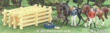 Set included a Chestnut Walking Arabian, Black Cantering Warmblood, 2 Dolls, 2 English Tack, 1 Tree, 1 Grooming Tote, 1 Body Brush, and 4 Sections of Fence. Based on characters from the books by Bonnie Bryant.