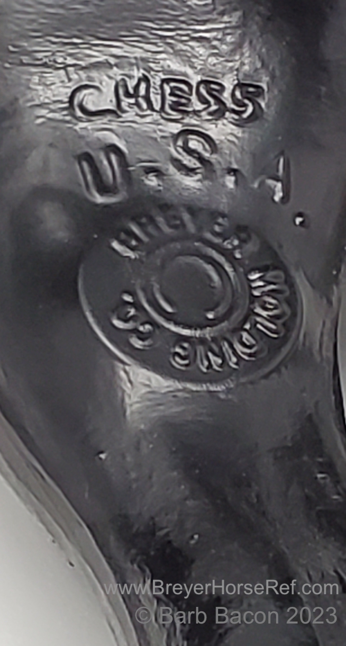 No ribbon color. In a set with a Palomino Merrylegs, Black Cantering Welsh Pony and a Grullo Clydesdale Stallion. Sears Exclusive.