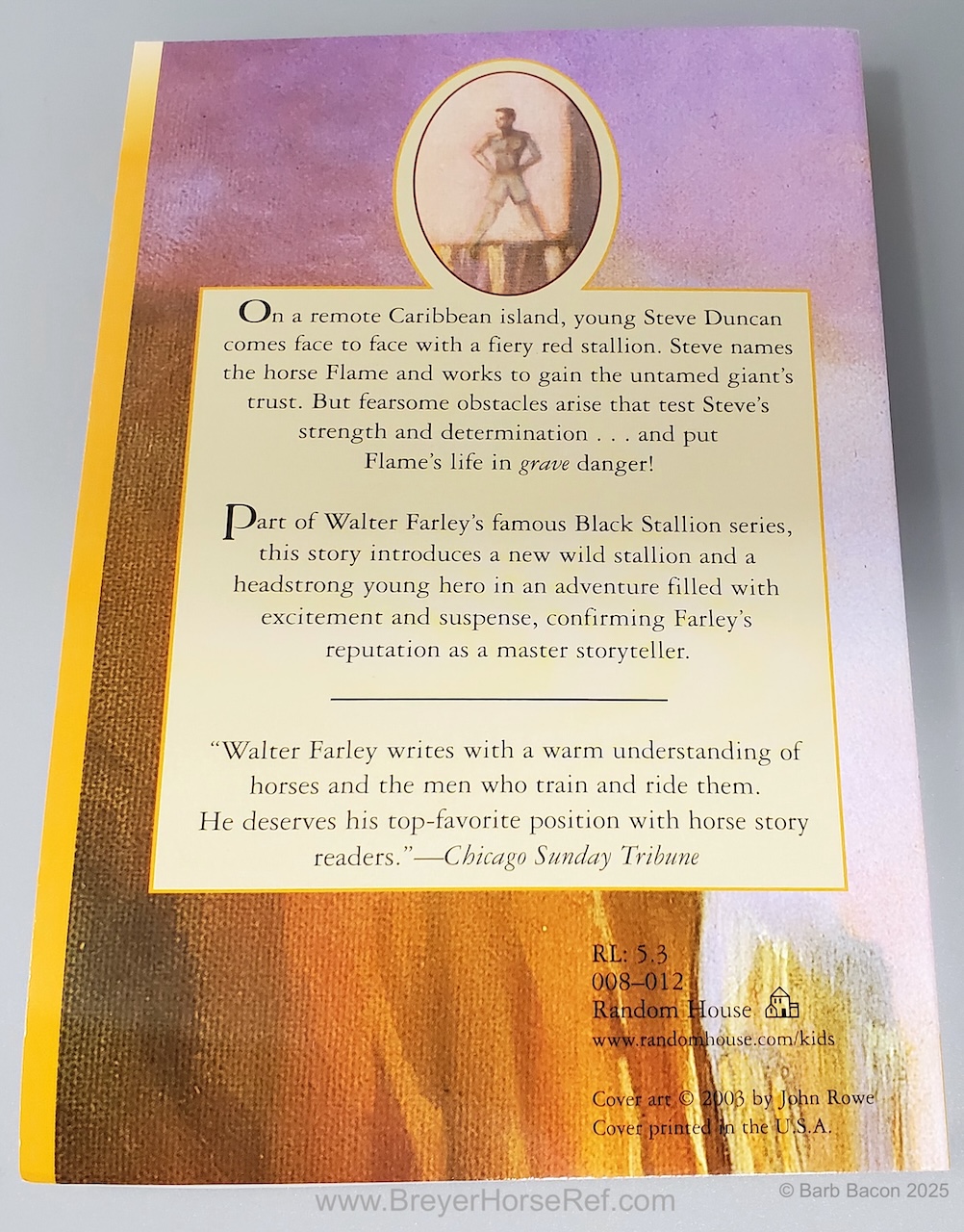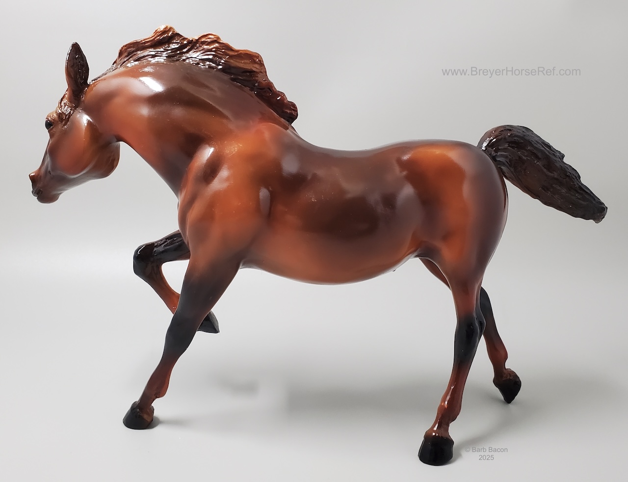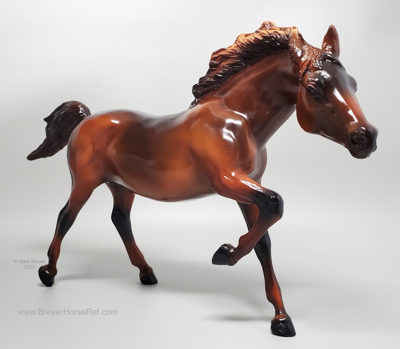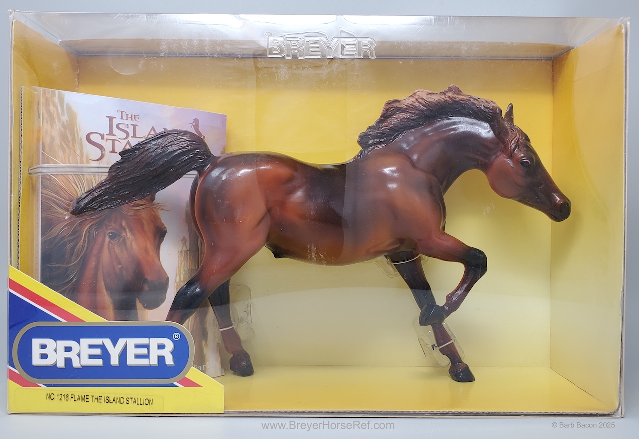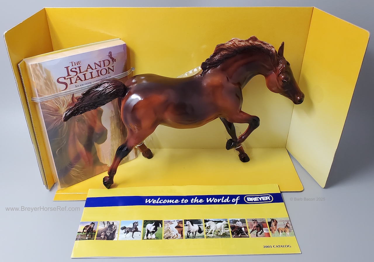 Included the paperback book 'The Island Stallion' by Walter Farley. Matte models are more uncommon, but not rare. There is also a semi-glossy variation. On the 2006 Retired List. Separate records for both matte and glossy.