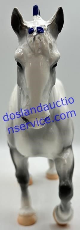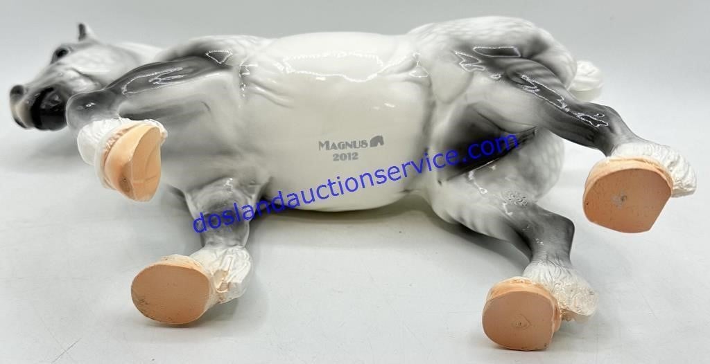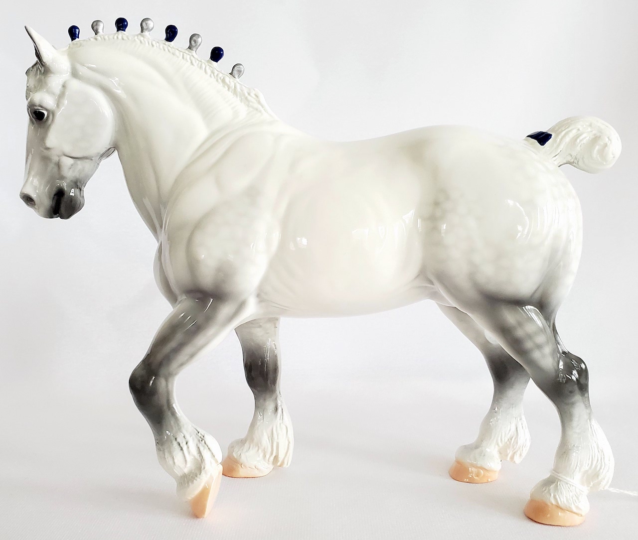 Alternating silver and blue bobs and a silver and blue tail ribbon. Magnus 2012 Stamp on belly.