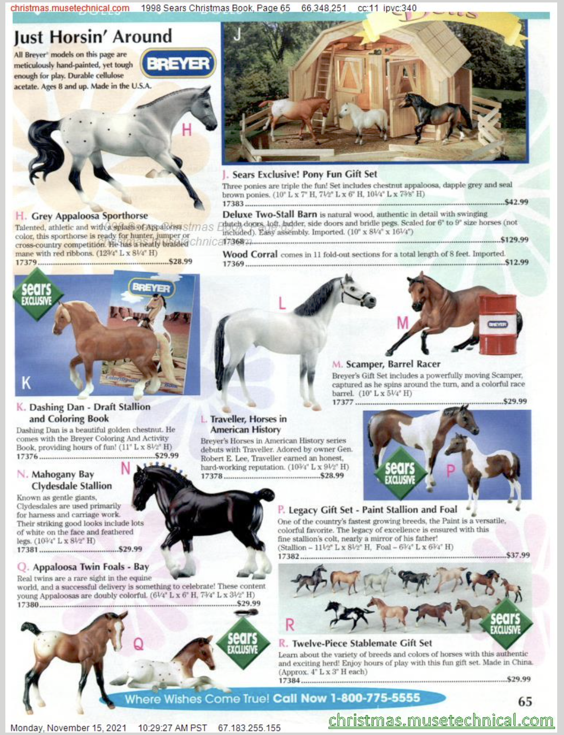 This set was released by Sears in 1998 as the 12 Piece Stablemate Gift Set #17384. The set included a red roan Arabian Stallion, chestnut peppercorn Citation, rose grey Draft Horse, bay appaloosa Morgan Stallion, bay Quarter Horse Stallion, rose grey Saddlebred, black pinto Seabiscuit, red dun Seabiscuit, dapple grey Swaps, liver chestnut Thoroughbred Mare, and a bay appaloosa Thoroughbred Lying and Standing foal.