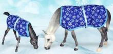 "With their rich dapple grey coats, Crystal and her foal Crispin are sure to bring holiday cheer to all. Wrapped in lovely snowflake blankets, this beautiful mare and her newborn foal are truly a special gift. Comes in a mail order box.” www.breyerhorses.com. Happy Holidays 2016 Stamp on belly.