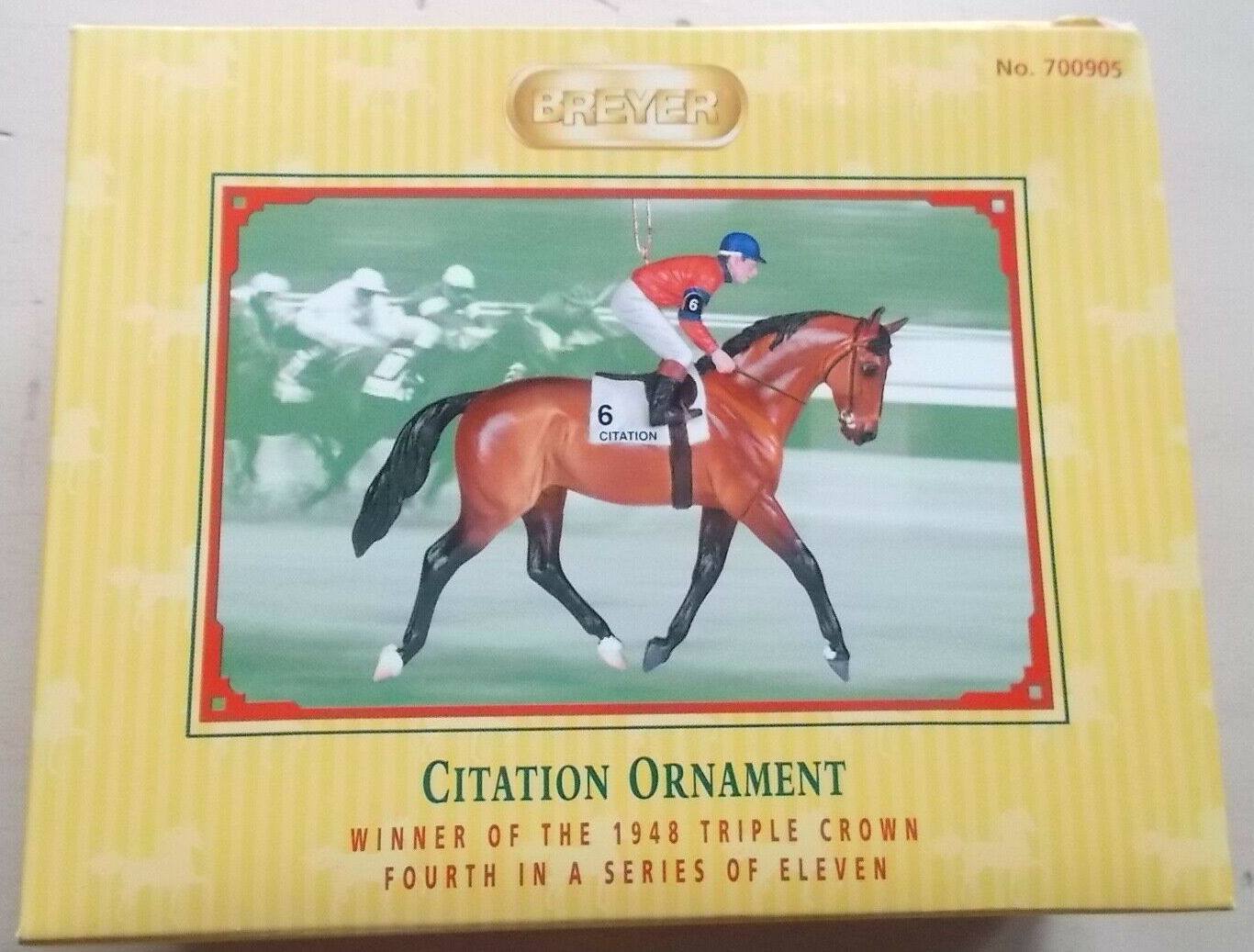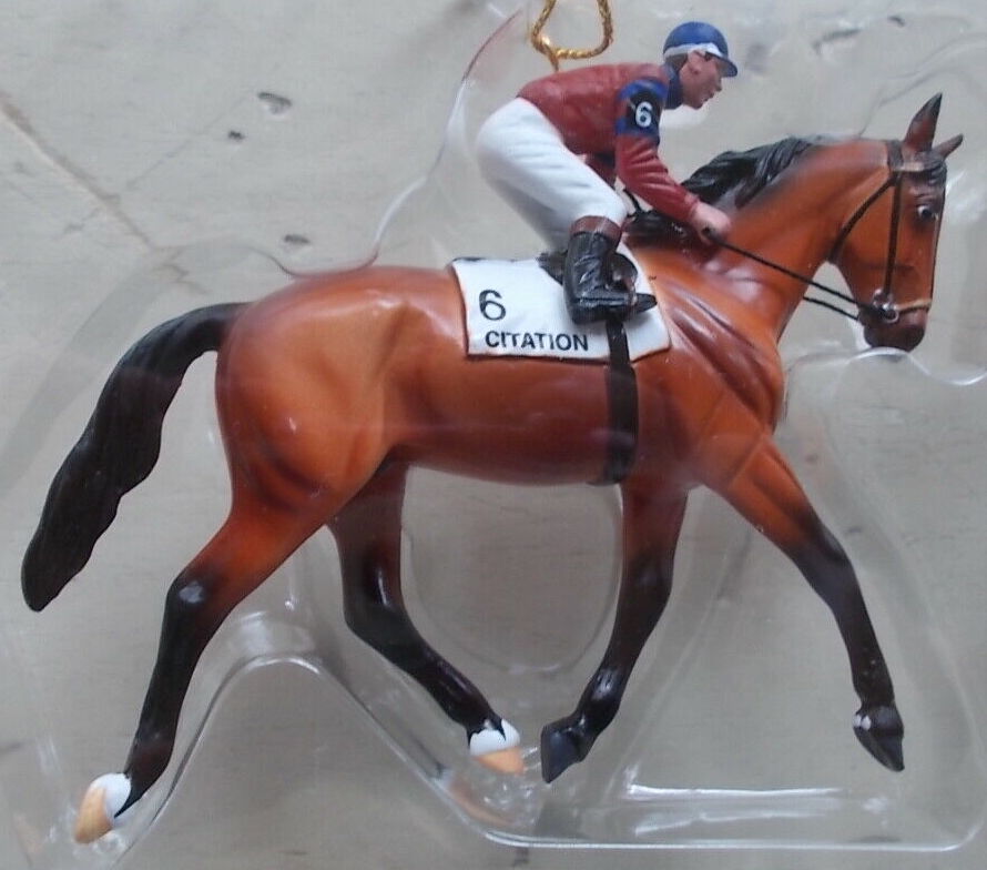 Citation won the Triple Crown in 1948, and was the 8th horse in history to win it. This was the 4th model released in Breyer's Triple Crown Ornament Series.