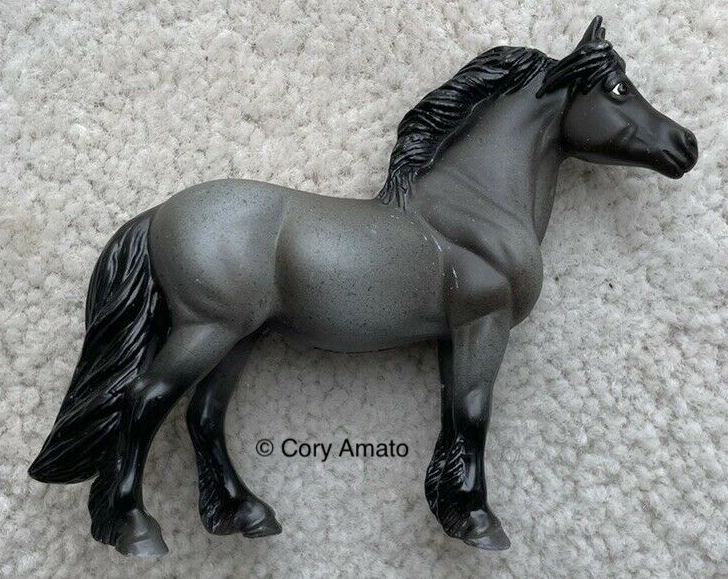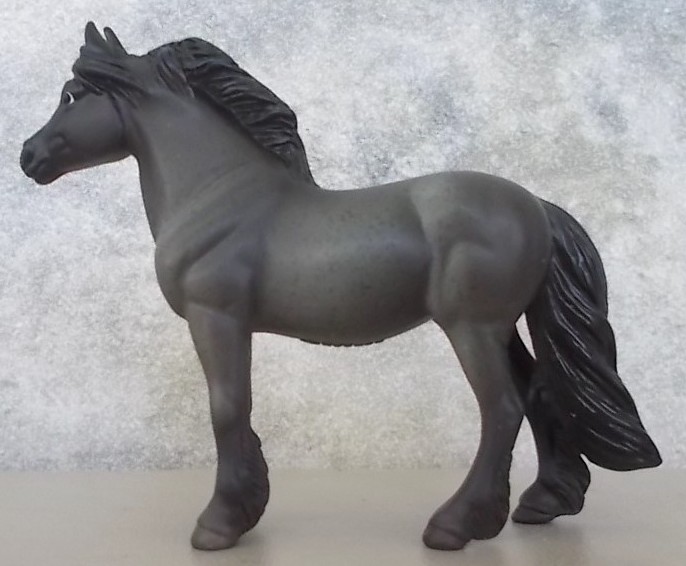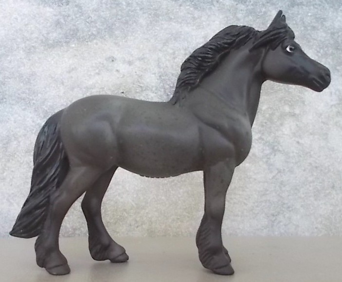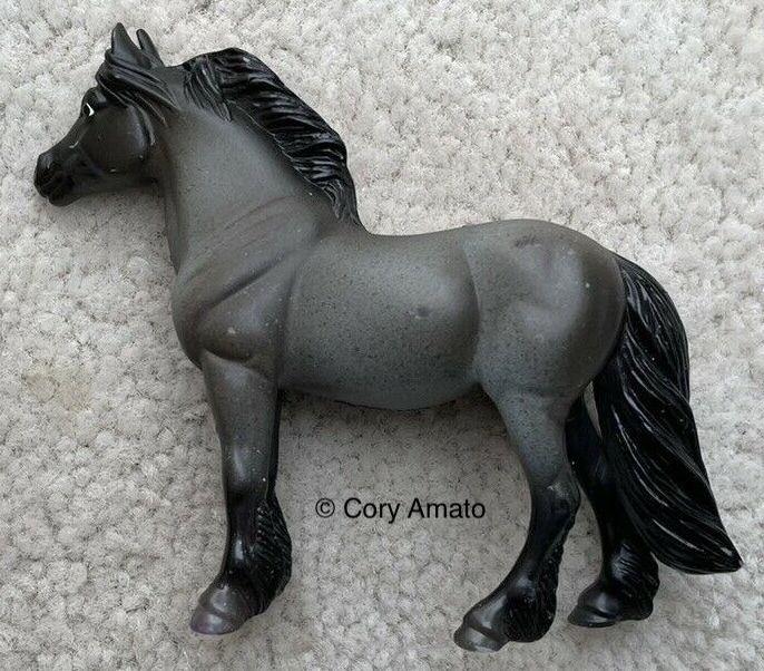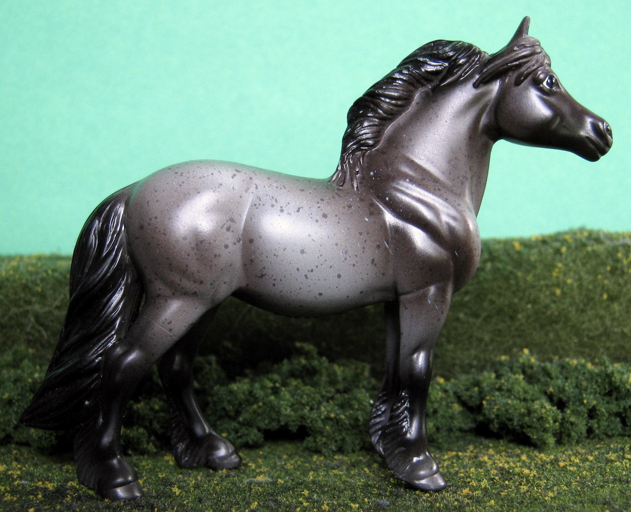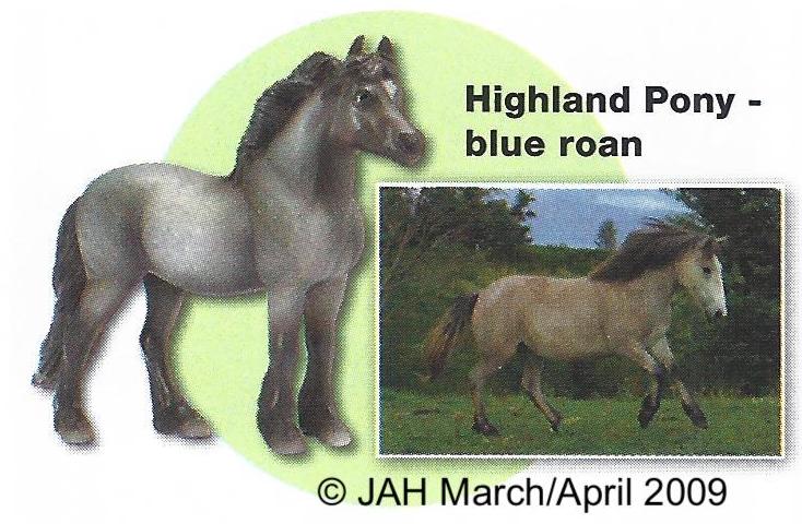 Released in the World of Horses Collection with Shadowbox Set #760218 from 2010-2011 through ToysRUs. This set included a chestnut American Saddlebred, a light grey Andalusian, a bay pinto Appaloosa mold, a chestnut Belgian, a dark bay Clydesdale, a blue roan Highland Pony, a red roan Peruvian Paso, a grey pinto Prancing Morgan, a red roan Shetland Pony, a chestnut appaloosa Standing Stock Horse, a bay Standing Thoroughbred and a palomino Warmblood. Since these were released through ToysRUs, they were not pictured in the 2010-2011 catalogs (they could have also been leftover models).