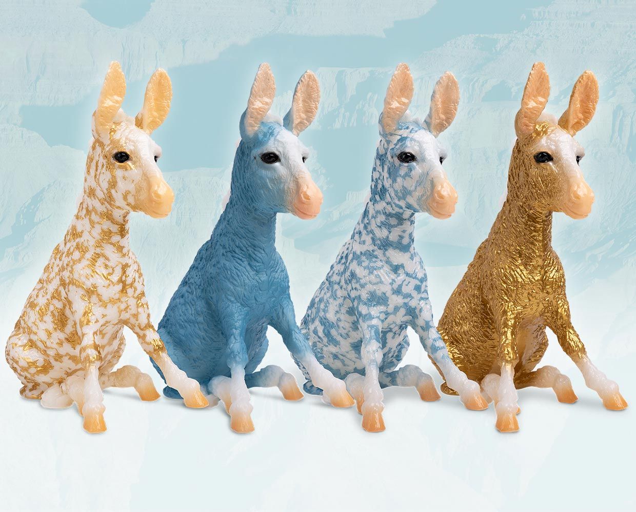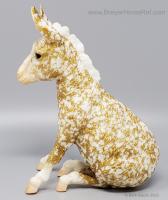 "The Fourth Release in the 2021 Vintage Club. Probably based on a bronze designed by sculptor Peter Jepsen in 1966, Chris Hess’s version of Brighty (mold #375) debuted in 1974. His big, fuzzy ears and recalcitrant attitude immediately won him a legion of fans, and he’s rarely been out of production long since then. His 2021 Vintage Club release Nugget comes in a Gambler’s Choice of the four original Decorator colors: Copenhagen, Florentine, Golden Charm and Wedgewood Blue. Nugget comes in a retro era style package with a booklet and numbered certificate of authenticity." www.breyerhorses.com. 2021 Vintage Collectors Club Stamp on bottom of model.