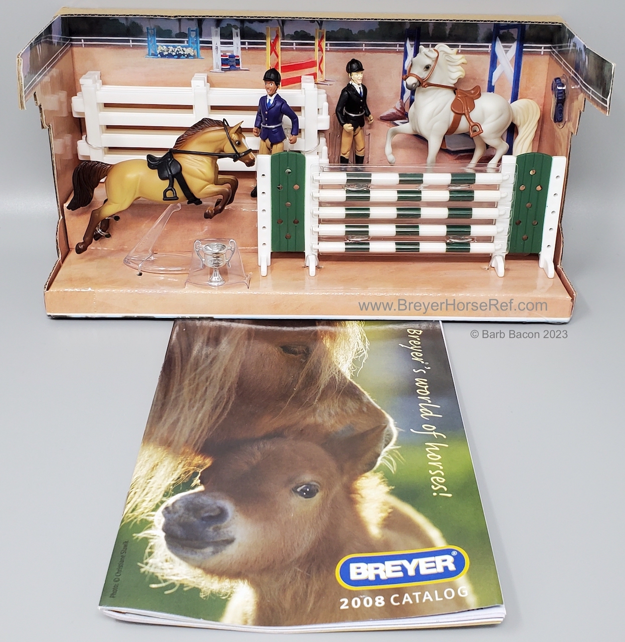 Included the Warmblood Jumper, 2 riders, jump, fencing, English tack, plastic ribbon and trophy. Based on characters from the books by Bonnie Bryant.