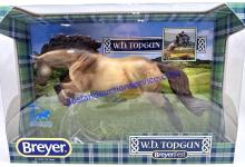 "Ireland’s only native breed, the Connemara Pony was developed from hardy stock that had to not only survive, but thrive in Western Ireland’s harsh terrain. These intelligent ponies are compact without bulk, have a long stride for their height, and a natural jumping ability that has earned them a place in hunter, jumper, and eventing competitions. One such example is the 2004 Connemara stallion, W.H. Topgun. A striking buckskin, he competed in eventing at the Preliminary level with his then trainer Elliott Blackmon in the saddle for owners Jim & Nancy Kilcrease. Currently focusing on dressage, Topgun is also siring future athletes and passing along his friendly disposition and work ethic to the next generation. In addition to being the American Connemara Pony Society’s (ACPS) Region IV Champion several times, Topgun has also been the ACPS Purebred Connemara of the Year, and received the US Equestrian Federation’s Horse of the Year Award in the Eventing Connemara division." www.breyerhorses.com.