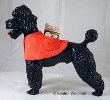Black Poodles were released with black, blue or green eyes (ongoing research for red eyes). Collars were black, blue (faded to grey), or red (faded to pink). Models had red (or faded to pink) colored tongues. Some models were made with black plastic.