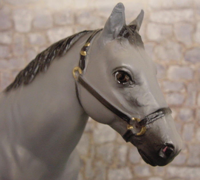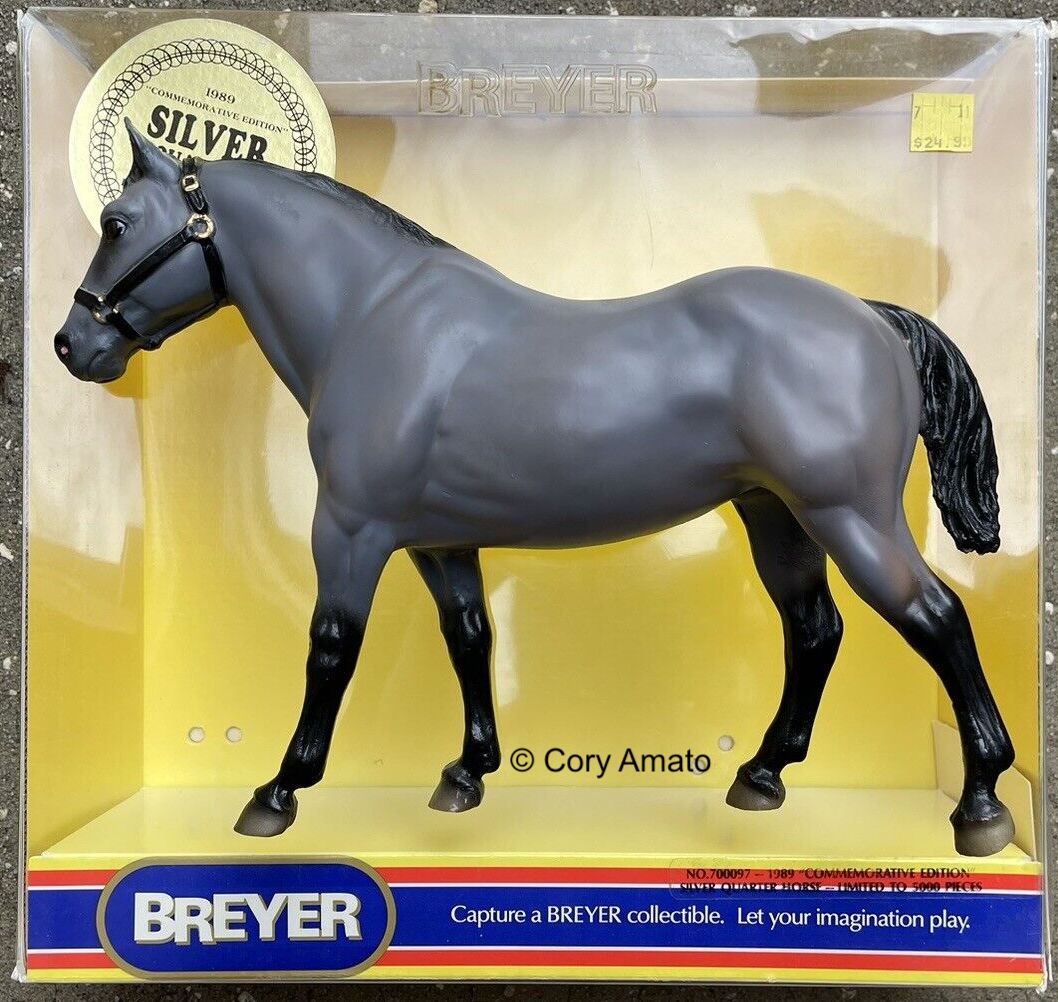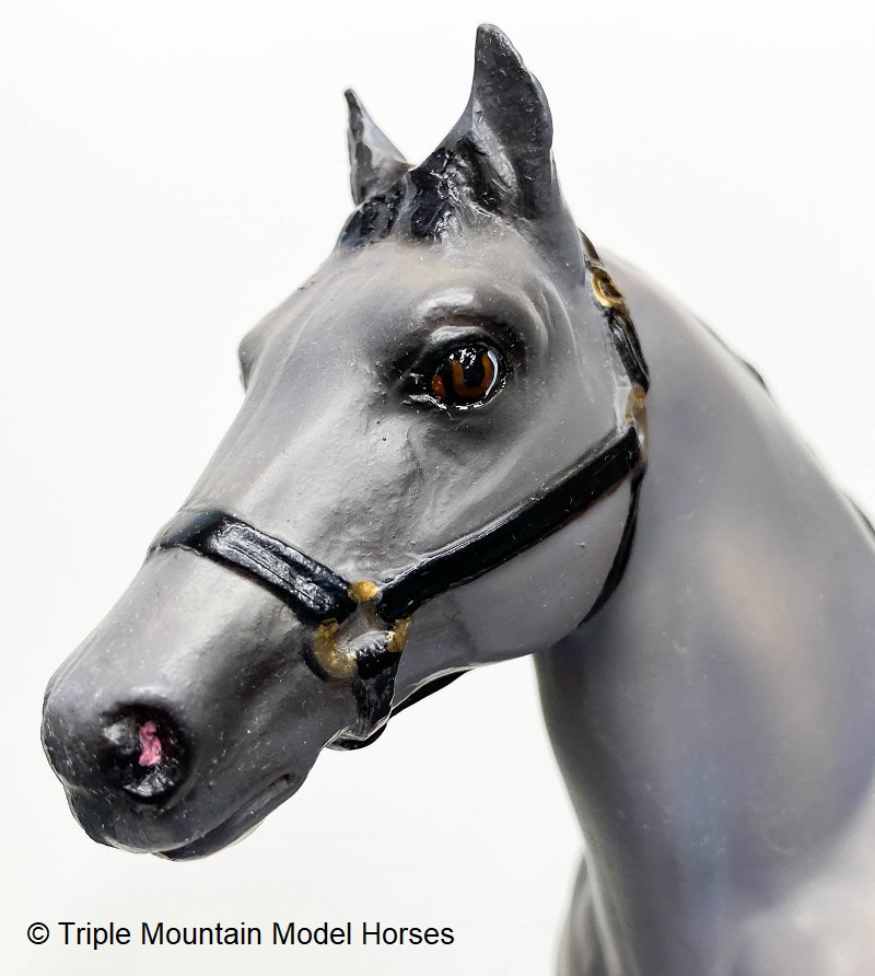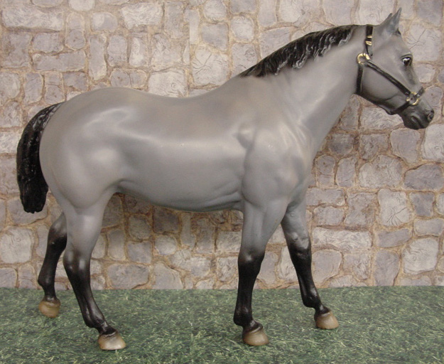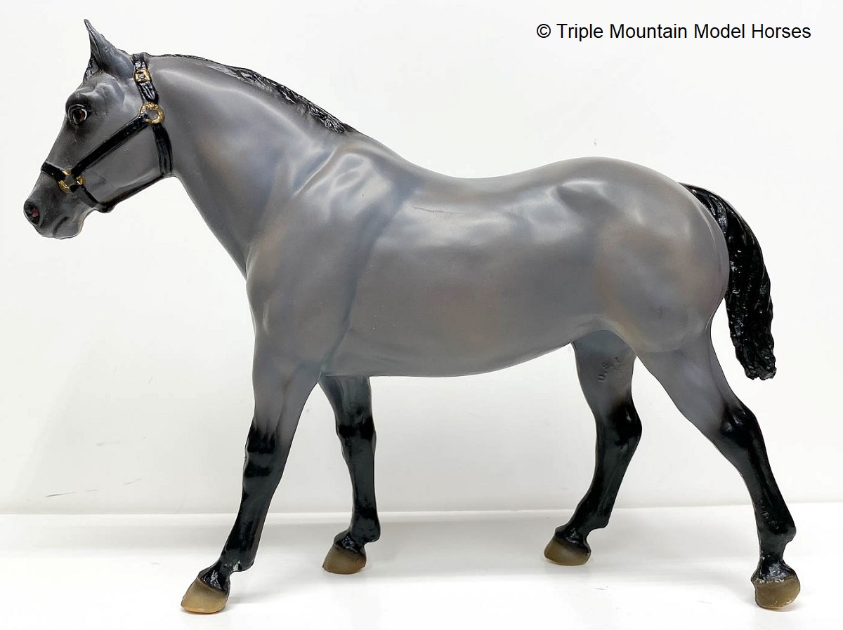1st Commemorative Edition, numbered by hand on belly, and hand painted tricolor eyes and halter. Referred to as a Grulla or steel grey color. Advertised as a Commemorative Edition, this is still considered a regular run.