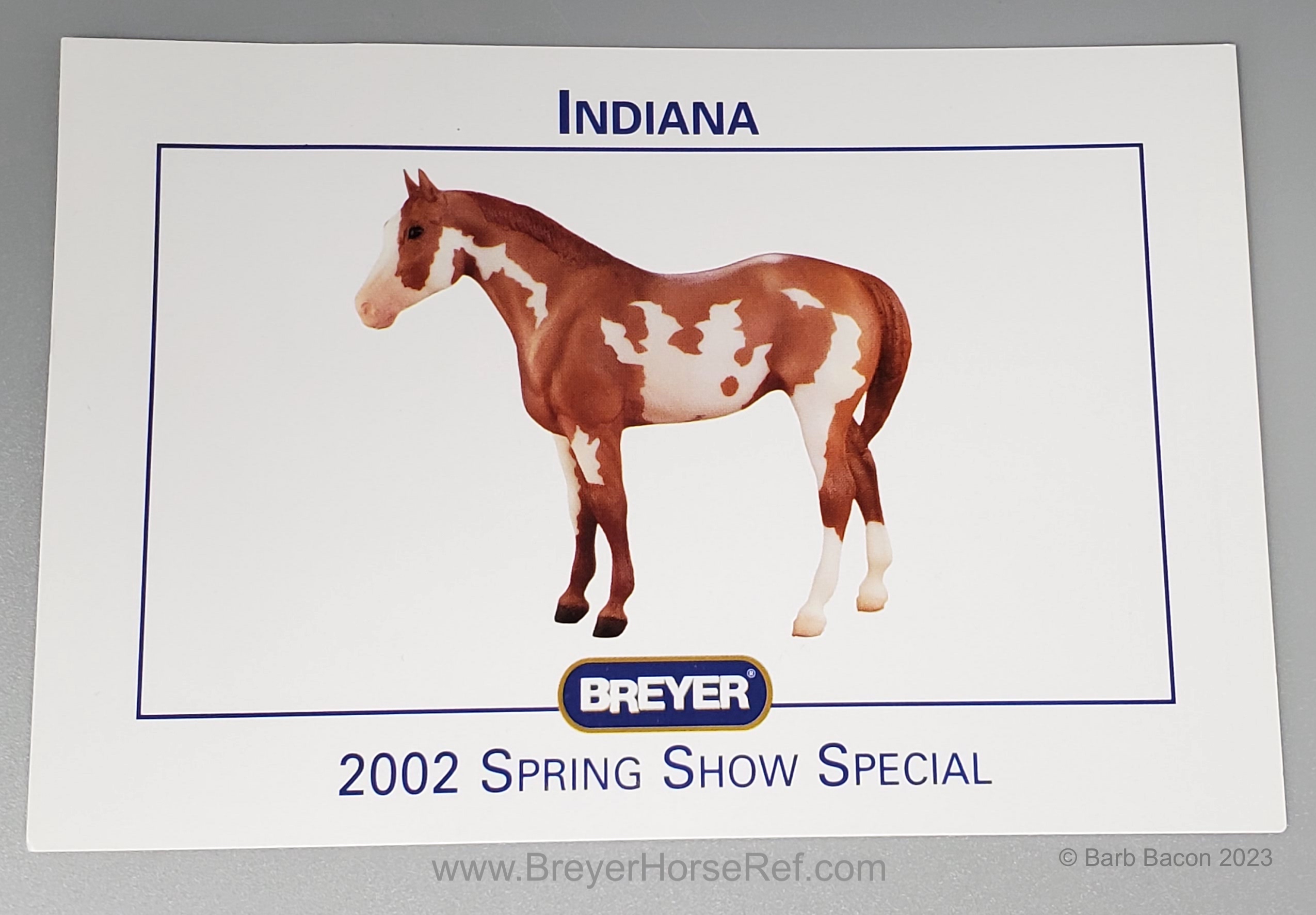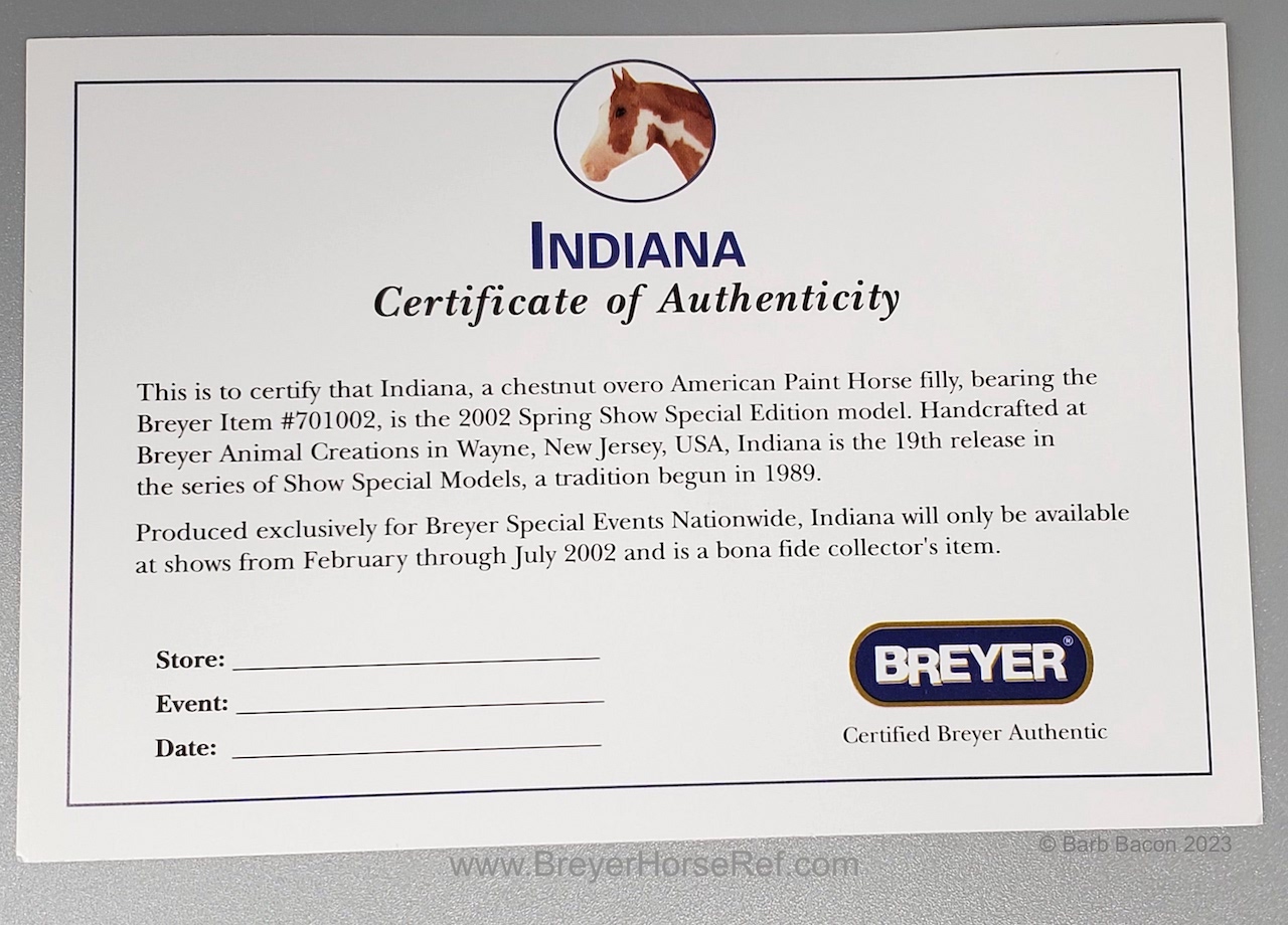 Available at Breyer Spring Shows from February-July 2002. On the 2002 Retired List.