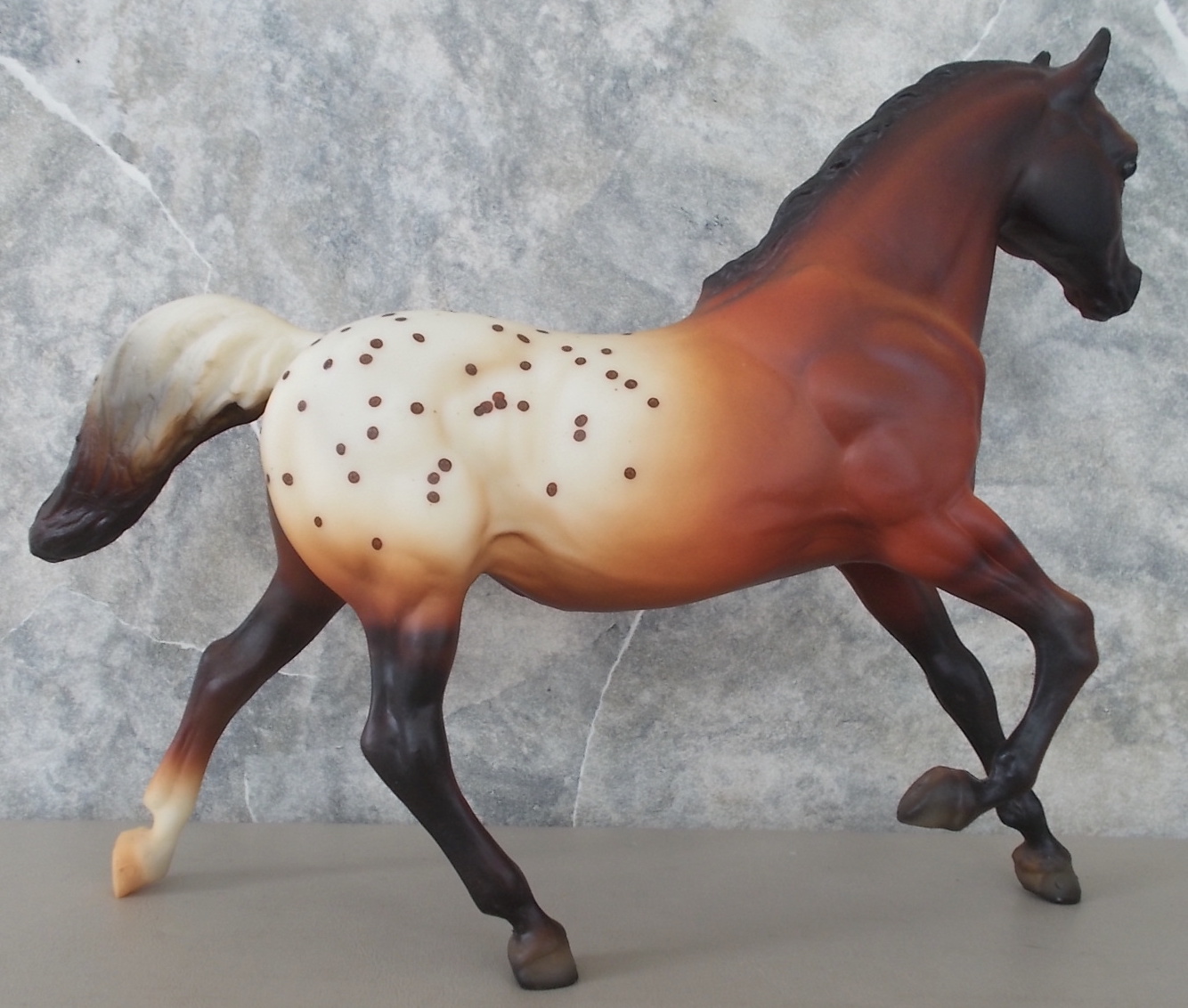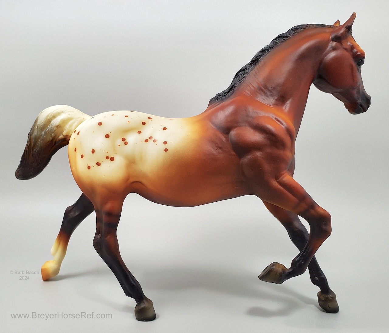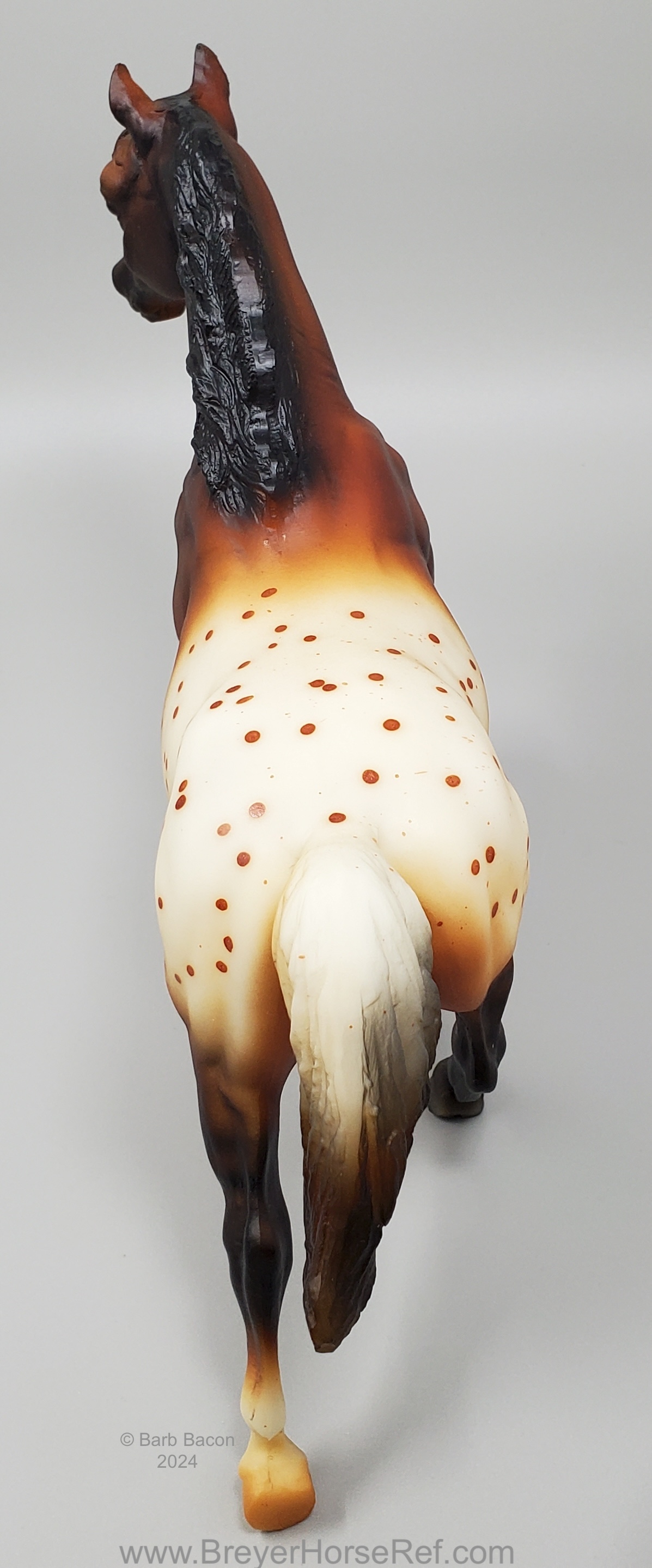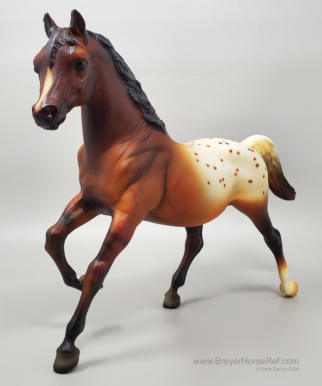 Advertised as a red dun appaloosa. Also available through Sears in 2000 along with the JAH issue. On the 2000 Retired List.