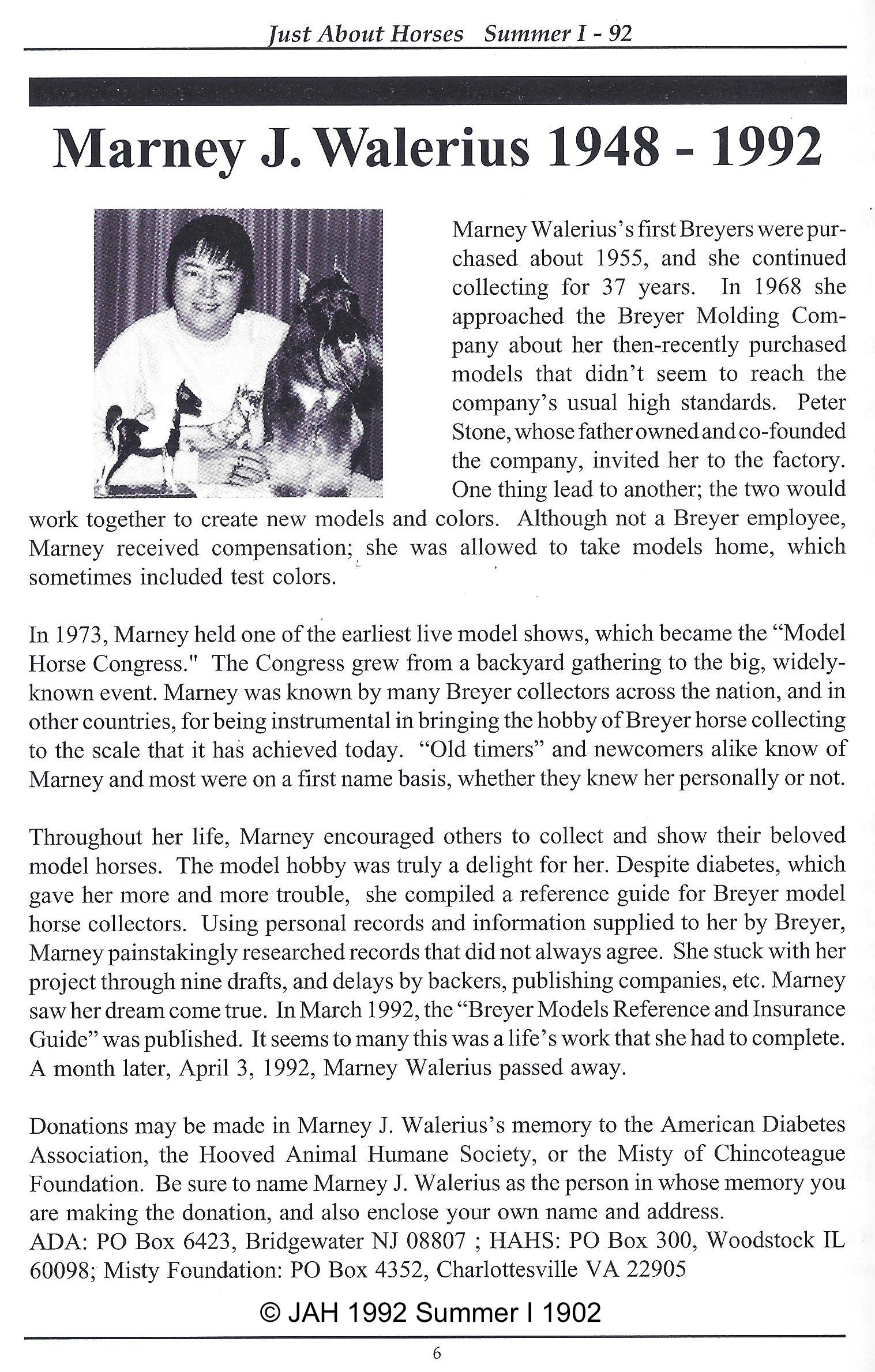 Presented to Marney Walerius by Breyer at the first BreyerFest in 1990. Same pattern as #818.