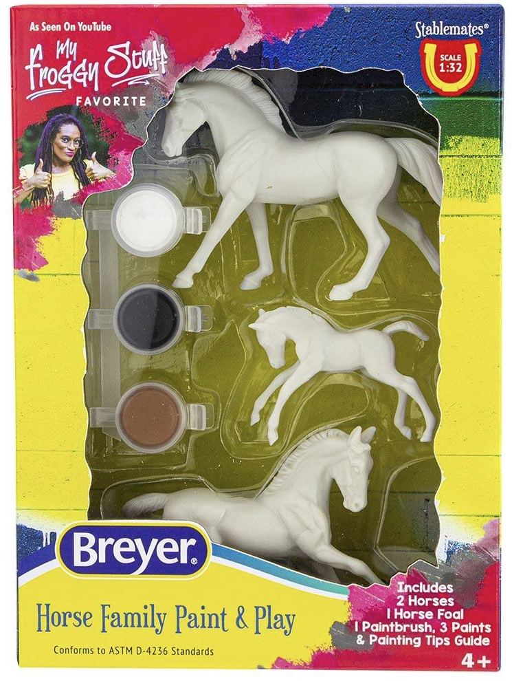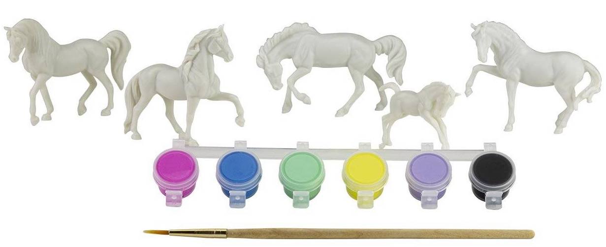 Horse Family Paint & Play Set #4239 released 2021-2026. Included Cantering Warmblood, Scrambling Foal, Warmblood, 3 paint pots, 1 paintbrush, and instruction booklet.