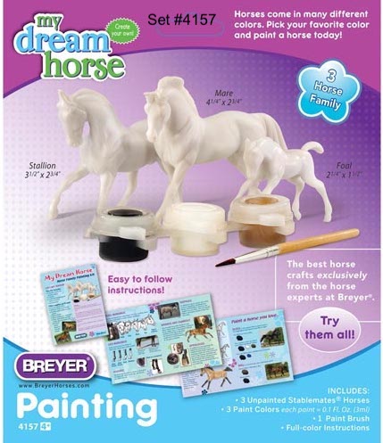My Dream Horse - Horse Family Painting Kit #4157 released 2011-2021. Included Cantering Warmblood, Scrambling Foal, and Warmblood, paint and paintbrushes.