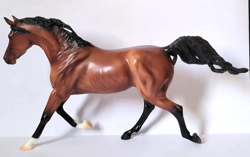 His pinnacle achievement was being named a Perfect Ten Equine by the AERC in 2017. To receive this honor, the horse and rider pair must complete 10 years of competition, 10,000 miles, 10 first place finishes, and 10 best condition awards!" www.breyerhorses.com. This run was modified as a Gelding.