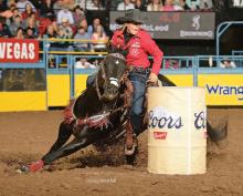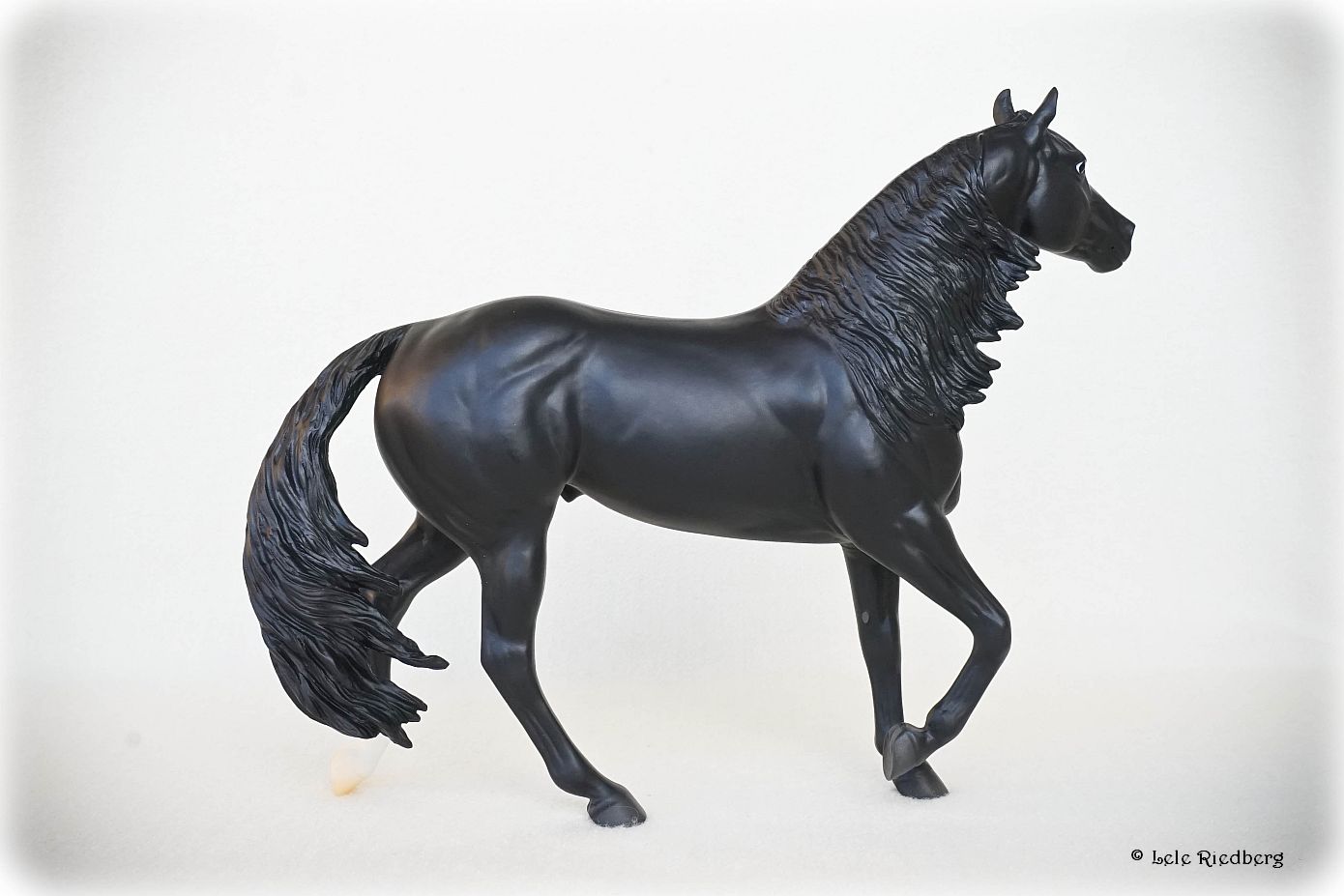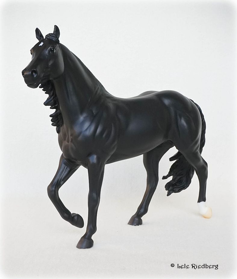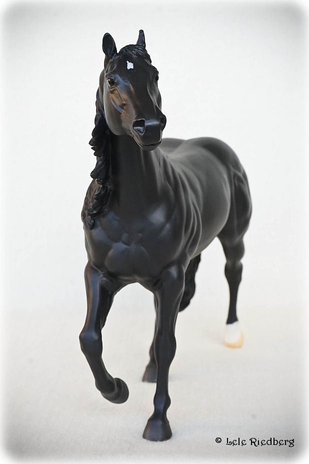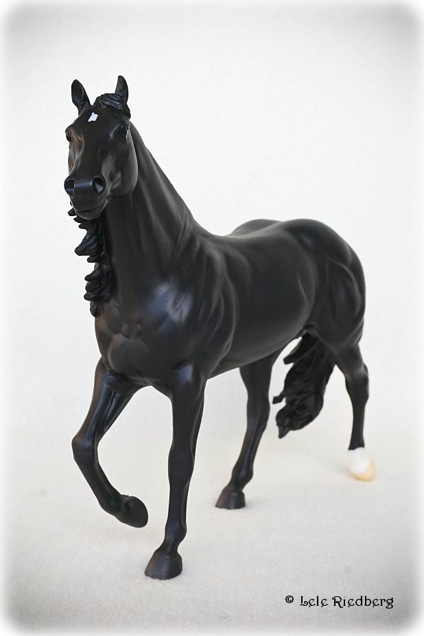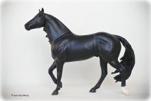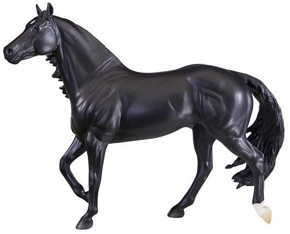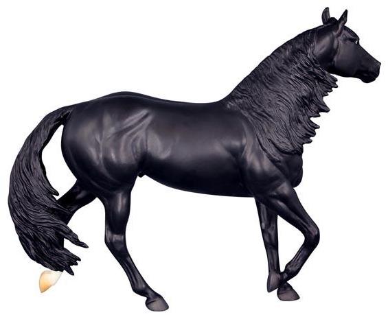 "Barrel racing is an exciting sport that requires speed, agility, and precision. Competing against the clock, a horse and rider dash in a cloverleaf pattern around three barrels, before galloping through the finish. Slick By Design, a 2007 Quarter Horse, is the all-time money-earning barrel racing stallion. "Slick" holds the National Finals Rodeo (NFR) record for the fastest stallion to ever run - 13.48 seconds! He's also won 19 Women's Professional Rodeo Association Championships, and is an American Quarter Horse Association World Champion. As a sire and competitor, we can't wait to see what the future holds for Slick and his rider Michele McLeod.” www.breyerhorses.com.